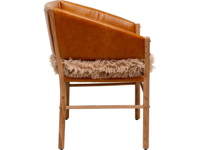 Η πολυθρόνα σε ζεστή καφέ απόχρωση αποτελεί έναν ιδανικό συνδυασμό φυσικών υλικών, σύγχρονης αισθητικής και αυθεντικής άνεσης. Η επένδυση από cowhide semi-aniline δέρμα προσφέρει μοναδική υφή και διαχρονικό χαρακτήρα, αναδεικνύοντας την ποιότητα μέσα από τις φυσικές αποχρώσεις και τη διακριτική γυαλάδα του δέρματος. Το καμπυλωτό της σχήμα αγκαλιάζει το σώμα, δημιουργώντας ένα αίσθημα θαλπωρής, ενώ το αφράτο κάθισμα από 100% πολυεστέρα προσθέτει επιπλέον άνεση και ζεστασιά. Ο σκελετός από φυσικό, ακατέργαστο κόντρα πλακέ και μασίφ ξύλο πεύκου εξασφαλίζει σταθερότητα και αντοχή στον χρόνο, ενώ τα πόδια από μασίφ ξύλο rubber tree ενισχύουν τον φυσικό και αυθεντικό χαρακτήρα του επίπλου. Ιδανική για τραπεζαρία, γραφείο ή ένα sophisticated lounge corner, η συγκεκριμένη καρέκλα αποπνέει premium αισθητική με σκανδιναβικές επιρροές και μπορεί να σταθεί είτε μόνη της ως statement piece είτε σε σετ γύρω από ένα ξύλινο τραπέζι.