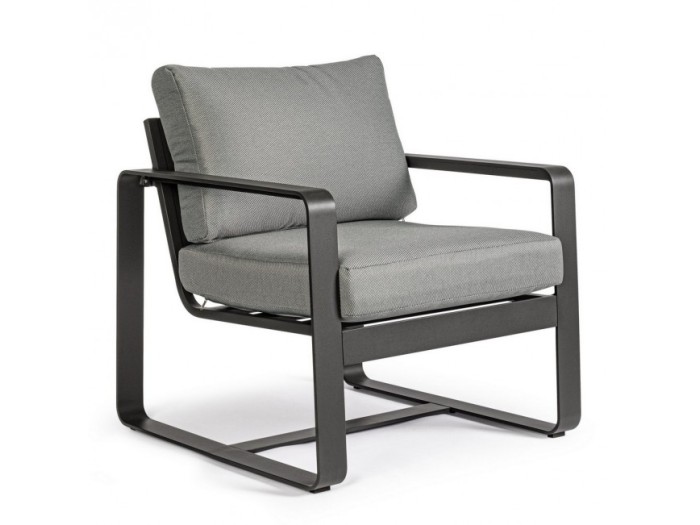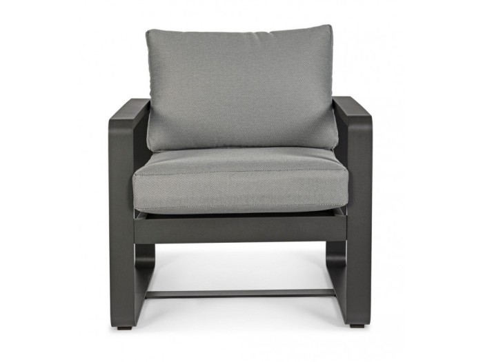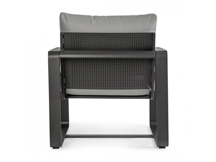 Πολυθρόνα εξωτερικού χώρου από αλουμίνιο με φινίρισμα ηλεκτροστατικής βαφής ανθρακί χρώματος.