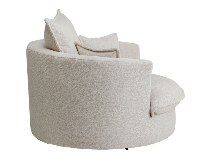 Μια πολυθρόνα που προσφέρει την απόλυτη αίσθηση χαλάρωσης και άνεσης. Με στρογγυλή, αγκαλιαστή μορφή και επένδυση σε απαλή μπεζ απόχρωση, δημιουργεί μια ατμόσφαιρα ηρεμίας και κομψότητας σε κάθε χώρο. Η υφή του υφάσματος από 100% πολυεστέρα προσκαλεί σε στιγμές απόλυτης ξεκούρασης, ενώ η περιστρεφόμενη βάση επιτρέπει ευελιξία και άνεση στη χρήση. Συνοδεύεται από δύο μαξιλάρια για επιπλέον στήριξη και στυλ. Ένα διαχρονικό έπιπλο που συνδυάζει design, ποιότητα και λειτουργικότητα — ιδανικό για σαλόνι ή υπνοδωμάτιο.| Μήκος | 115 |