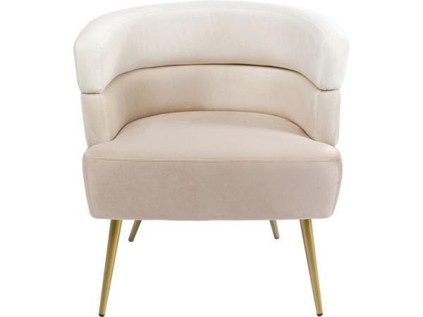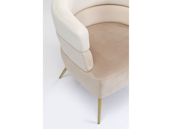 Πολυθρόνα με βελούδινη όψη που αγκαλιάζει την πλάτη και τα χέρια με το που καθίσετε. Οι κρεμ αποχρώσεις της πολυθρόνας σε συνδυασμό με τα λακαρισμένα, χρυσά, ατσάλινα πόδια θα χαρίσουν μια πνοή πολυτέλειας και απόλυτης κομψότητας στην διακόσμηση του χώρου σας.Ύψος καθίσματος: 43.50 εκ.