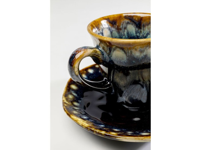 Σετ ποτήρι του καφέ με πιατάκι, πήλινα stoneware και σε σκούρο μπλε χρώμα.
