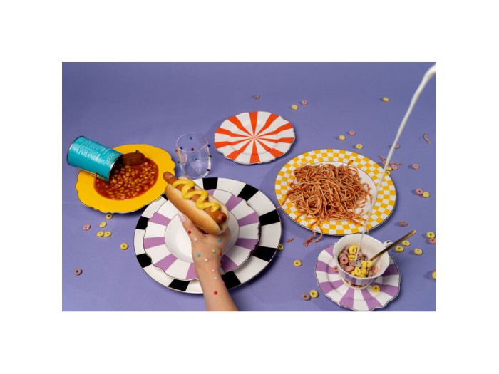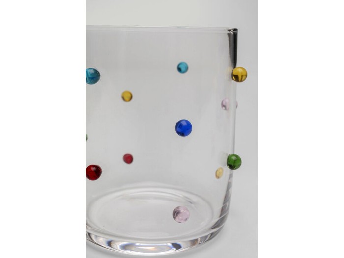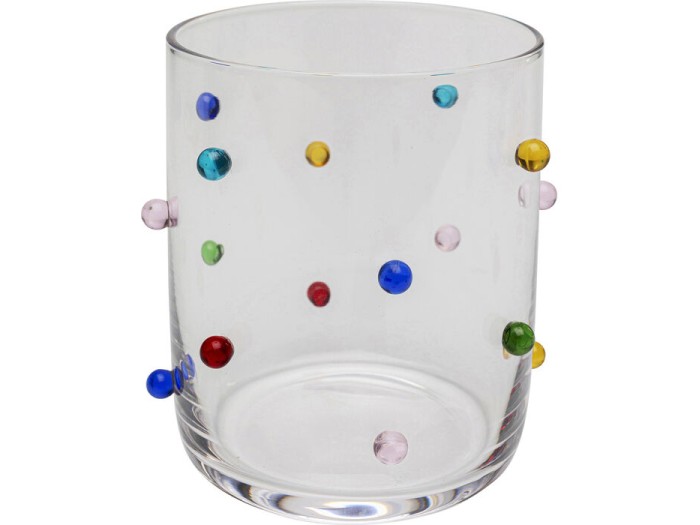 Ποτήρι γυάλινο και διάφανο με πολύχρωμες βούλες.