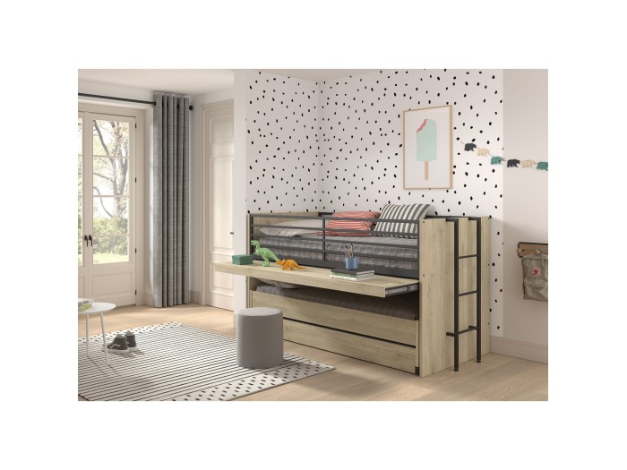 Ημι-υπερυψωμένο κρεβάτι Sam, ύψους 117 εκ. διαθέσιμο σε διαστάσεις 90×200 εκ. και δύο χρώματα. Ένας τέλειος συνδυασμός άνεσης, λειτουργικότητας και στυλ. Κατασκευάζεται από μασίφ ξύλο δρυς και δημιουργεί μια ζεστή και φιλόξενη ατμόσφαιρα σε οποιοδήποτε παιδικό δωμάτιο. Διαθέτει ένα επεκτάσιμο συρόμενο γραφείο που μπορεί εύκολα να κρυφτεί όταν δεν χρησιμοποιείται, αφήνοντας περισσότερο χώρο για παιχνίδι. Επιπλέον, προσφέρει και κρεβάτι φιλοξενίας, καθιστώντας το ιδανικό για τα παιδιά που αγαπούν να φιλοξενούν φίλους. Πιστοποιημένη με Ευρωπαϊκά πρότυπα ΕΝ-747-1&2, ΕΝ-716, REACH, TUV και FSC.