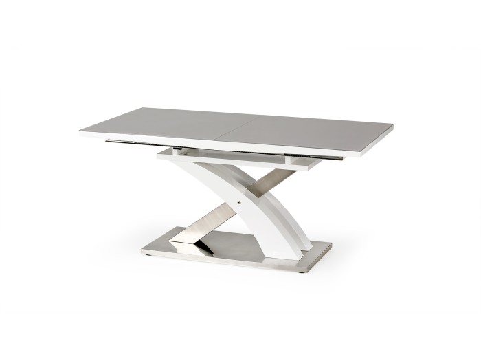 τραπέζι επεκτεινόμενο, διαστάσεις: 160÷220/90/78 cm, υλικό: γυαλί / λακαρισμένο MDF / ανοξείδωτο, χρώμα: γυαλί - γκρι, MDF - λευκό