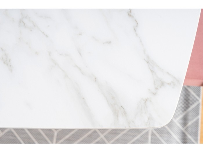 επάνω: MDF + κεραμικά με εφέ μαρμάρου, σκελετός: MDF + βουρτσισμένο ατσάλι, χρώμα: λευκό μάρμαρο / λευκό ματ