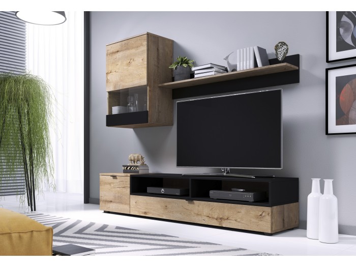 SNAP, wall set color: lefkas oak / black matt DIOMMI V-PL-SNAP-LEFKAS