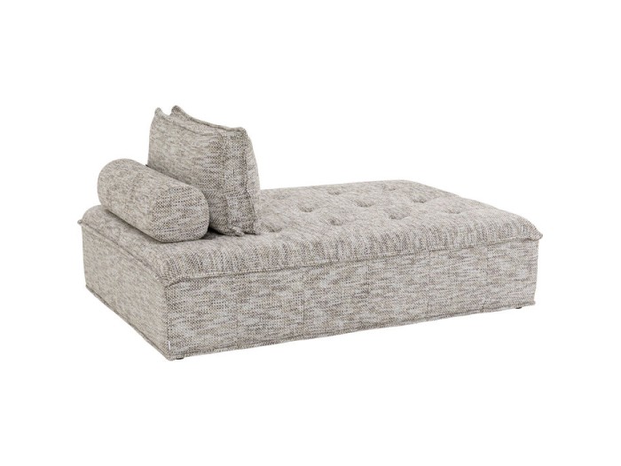 Σε γκρι ύφασμα είναι ένα έξυπνο lounge έπιπλο που συνδυάζει χαλάρωση και μοντέρνο design. Η πλούσια, μελανζέ υφή του υφάσματος θυμίζει cozy ξενοδοχείο πόλης, ενώ το καπιτονέ κάθισμα της δίνει κομψή, διαχρονική εμφάνιση. Ιδανική για γωνιά ανάγνωσης, μπροστά από το παράθυρο ή ως extra κάθισμα στο σαλόνι, προσφέρει άνετο χώρο για να καθίσετε ή να ξαπλώσετε. Τα δύο μαξιλάρια – κύλινδρος και πλάτης – αγκαλιάζουν άνετα το σώμα, ενώ το ανθεκτικό ύφασμα υψηλής αντοχής στη φθορά είναι ιδανικό για καθημερινή χρήση.