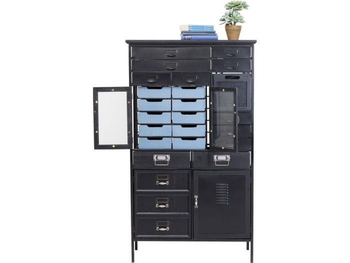 Ψηλή συρταριέρα με μετώπες από μαύρο λακαρισμένο ατσάλι και πολλές προσεγμένες λεπτομέρειες