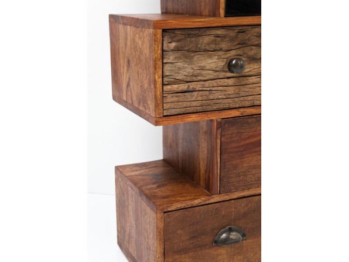 Σώμα από μάσσιφ ξύλο mango με φυσικά νερά και γεωμετρική πρόσοψη που εναλλάσσει μεγέθη και θέσεις για ένα δυναμικό αποτέλεσμα