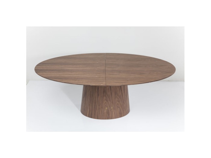 Κομψότητα με σύστημα. Αυτό το τραπέζι τραπεζαρίας ελλειπτικού σχήματος συνδυάζει τη λειτουργικότητα με το σχεδιασμό. Επεκτεινόμενο 200-250cm. Πάχος επιφάνειας τραπεζιού 3cm. Υλικό: καπλαμά καρυδιάς καφέ. Διατίθεται επίσης σε γυαλιστερή λευκή λάκα.