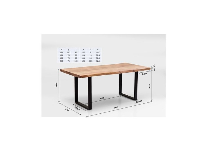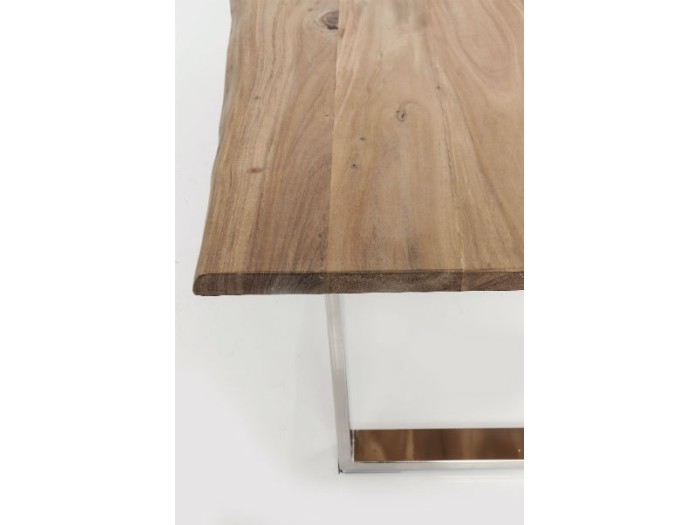Ένα τραπέζι με φυσική ομορφιά για την τραπεζαρία και εντυπωσιακή μορφή με χειροποίητα κατασκευασμένη επιφάνεια πάχους 3.5 εκ, από μασίφ ξύλο ακακίας και ασημί μεταλλικά ατσάλινα πόδια.