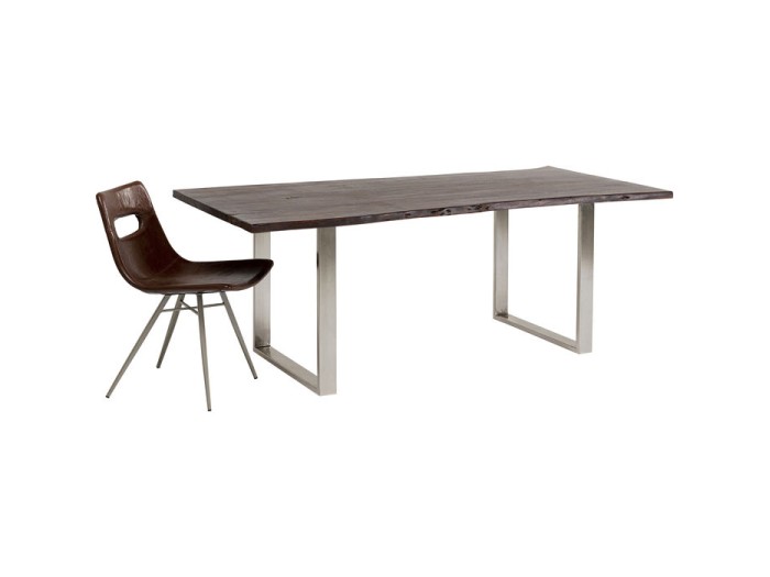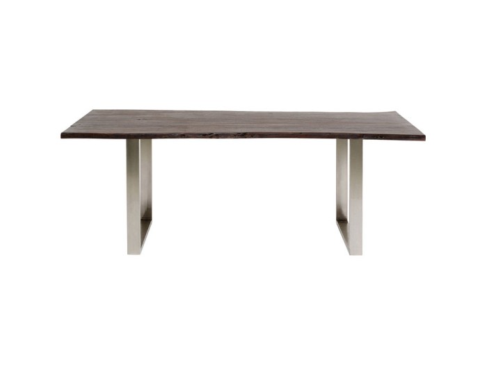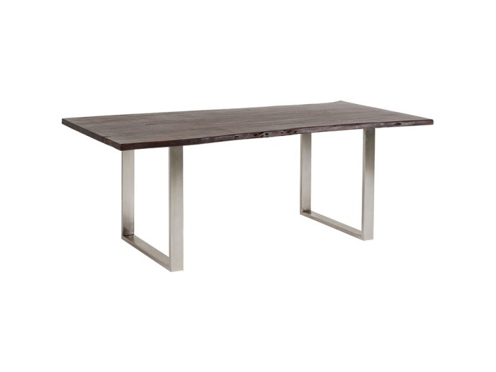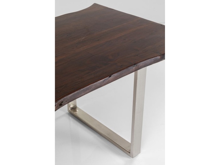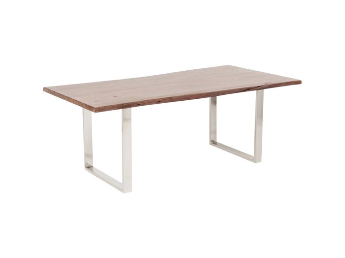 Ένα τραπέζι με φυσική ομορφιά για την τραπεζαρία και εντυπωσιακή μορφή με χειροποίητα κατασκευασμένη επιφάνεια πάχους 3.5 εκ, από μασίφ ξύλο ακακίας και ασημί μεταλλικά ατσάλινα πόδια.