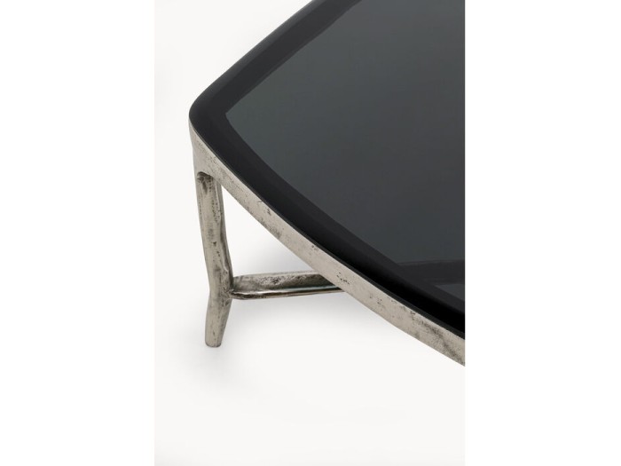 Αυτό το κομψό τραπεζάκι σαλονιού συνδυάζει σύγχρονο design με διακριτική πολυτέλεια. Η επιφάνεια από γκρι γυαλί ασφαλείας δημιουργεί μια εκλεπτυσμένη και μοντέρνα αισθητική, ενώ η μεταλλική βάση με φινίρισμα brass-plated αλουμινίου προσθέτει μια ζεστή μεταλλική πινελιά στον χώρο. Οι καθαρές γραμμές και το χαμηλό, κομψό προφίλ του το καθιστούν ιδανικό για μοντέρνα σαλόνια, προσφέροντας παράλληλα πρακτική επιφάνεια για διακοσμητικά αντικείμενα, βιβλία ή καθημερινή χρήση. Ο συνδυασμός γυαλιού και μετάλλου χαρίζει στο τραπεζάκι μια ισορροπία ανάμεσα στη διαχρονική κομψότητα και τον σύγχρονο χαρακτήρα.