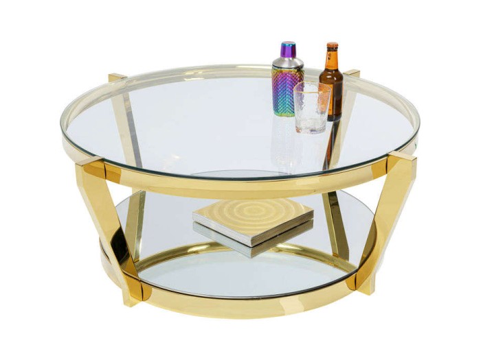 Τα τραπεζάκια σαλονιού είναι σαν τις τσάντες - προσθέτουν την τελευταία πινελιά σε μια εμφάνιση. Δεν είναι μόνο το γυαλιστερό πλαίσιο αυτού του τραπεζιού σαλονιού που γοητεύει, αλλά και ο συνδυασμός της διάφανης και της αντανακλαστικής επιφάνειας του τραπεζιού.Highlight για το σαλόνι: ένα στρογγυλό τραπεζάκι σαλονιού από γυαλισμένο ανοξείδωτο ατσάλι με δύο επιφάνειες,Ένα λαμπερό τραπεζάκι σε χρυσό και γυαλί με πολυτελή εφέ καθρέφτη