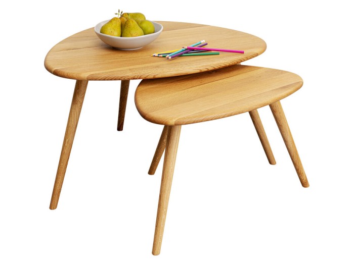 Τραπέζι Βοηθητικό Σετ 2 τεμ με στρογγυλές γωνίες από μασίφ ξύλο δρυς