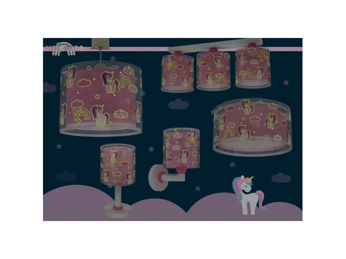 παιδικό φωτιστικό οροφής Unicorns, ιδανικό για γενικό φωτισμό με θέμα τους μονόκερους. Διαθέτει διπλό τοίχωμα με διάφανες εξωτερικές επιφάνειες και φωσφορίζοντα στοιχεία που λάμπουν στο σκοτάδι. Είναι φτιαγμένο από ανθεκτικό συνθετικό υλικό λεπτού πολυπροπυλενίου με ανεξίτηλες εκτυπώσεις. Το Unicorns παιδικό φωτιστικό οροφής προσφέρεται με διαχυτή φωτός, ιδανικό για μικρότερες ηλικίες, εξασφαλίζοντας ομοιόμορφη φωτεινότητα και προστασία για τα μάτια. Το σετ ανάρτησης του φωτιστικού είναι πλήρες, περιλαμβάνοντας κλέμα, γάντζο, ρυθμιζόμενο καλώδιο και ροζέτα για την κάλυψη των σημείων σύνδεσης και στήριξης. Το Unicorns παιδικό φωτιστικό οροφής απαιτεί συναρμολόγηση,
