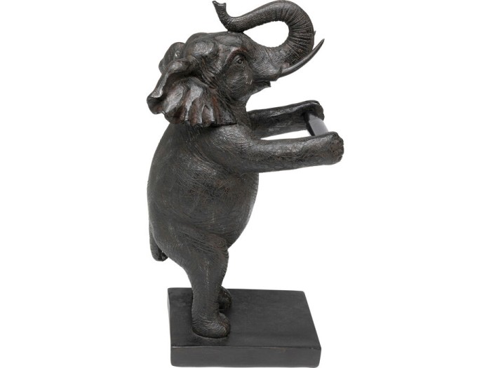 Ένα διακοσμητικό που μετατρέπει το μπάνιο σε χώρο με χαρακτήρα. Ο ελέφαντας, με υψωμένη προβοσκίδα και παιχνιδιάρικη διάθεση, κρατά το ρολό και γίνεται το απόλυτο conversation piece. Το μαύρο φινίρισμα τονίζει τις λεπτομέρειες της υφής, ενώ η χειροποίητη κατασκευή και η χειροβαφή κάνουν κάθε κομμάτι μοναδικό. Ιδανικό για eclectic, glam ή maximal χώρους που θέλουν μια δόση χιούμορ χωρίς να χάνουν το design στοιχείο.| Μήκος | 22 |