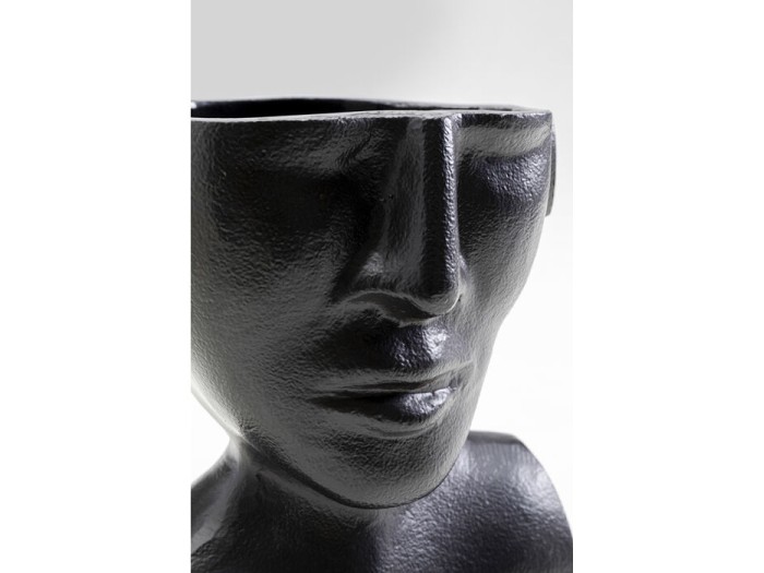 Βάζο από αλουμίνιο σε χρώμα μαύρο, το οποίο έχει το σχήμα ενός προσώπου. Μια εξαιρετική επιλογή για τον χώρο σας!