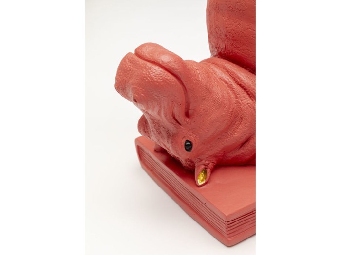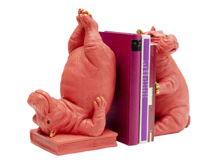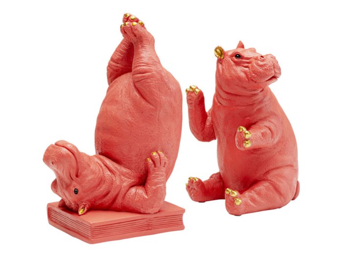 Βιβλιοστάτες ιπποπόταμοι κατασκευασμένοι από πολυρεσίνη σε ροζ χρώμα.