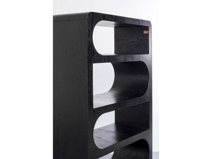 Θέλετε να επιπλώσετε το σπίτι σας ή συγκεκριμένα το σαλόνι με μοντέρνο τρόπο; Και επιθυμείτε ακόμα να δώσετε στο εσωτερικό σας στυλ μια πολύ ιδιαίτερη πινελιά; Τότε αυτό το ράφι μπορεί να είναι ό,τι πρέπει! Στιβαρά κατασκευασμένο, με το σχέδιο ενός γλυπτού και τα εκλεπτυσμένα σχήματα των διαμερισμάτων των ραφιών, με το Forma θα έχετε ένα πραγματικό μαγαζί που τραβάει τα βλέμματα. Όσο ιδιαίτερο είναι το σχέδιο, τόσο κλασικά κομψό είναι και το μαύρο χρώμα. Το μαύρο χρώμα για τα έπιπλα θεωρείται από τους διακοσμητές εσωτερικών χώρων σημαντικό δομικό στοιχείο της σύγχρονης επίπλωσης, επειδή, αν χρησιμοποιηθεί σωστά, προσδίδει δομή και χαρακτήρα στους χώρους. Με τον σχεδιασμό της, αυτή η μαύρη μονάδα ραφιών είναι εμπνευσμένη από τις σαρωτικές γραμμές του σχεδιασμού της δεκαετίας του '60 και του '70. Ο λεγόμενος φλεγόμενος κόκκος του ξύλου καπλαμά φλαμουριάς είναι ιδιαίτερα διακοσμητικός και αναβοσβήνει κάτω από το βερνίκι. Το ξύλο τέφρας είναι σκληρό και ταυτόχρονα ελαστικό, ιδανική προϋπόθεση για την επεξεργασία του σε καπλαμά. Γνωρίζατε ότι η παραγωγή καπλαμά είναι σε κάποιο βαθμό βιώσιμη; Εξάλλου, αυτό σημαίνει ότι μπορεί να επεξεργαστεί πολύ περισσότερο ξύλο από έναν κορμό.Βιβλιοθήκη από μαύρο ξύλο, 180 x 90 x 38 cm (Υ/Β/Δ)