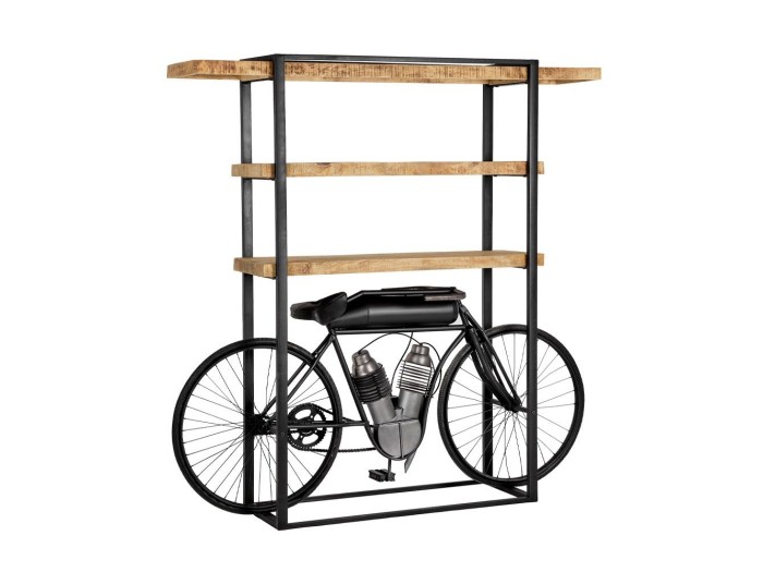Η βιβλιοθήκη Motor αποτελεί ένα μοναδικό κομμάτι που συνδυάζει τη βιομηχανική αισθητική με τον πρωτότυπο σχεδιασμό.Κατασκευασμένη από μαύρο και ασημί μέταλλο, αναδεικνύει έναν εντυπωσιακό σκελετό που θυμίζει μοτοσικλέτα, προσδίδοντας έντονο χαρακτήρα και μοναδικότητα.Τα ράφια της από ξύλο mango σε φυσική απόχρωση δημιουργούν μια ζεστή αντίθεση, ενώ προσφέρουν πρακτικό χώρο για την οργάνωση και την ανάδειξη βιβλίων, διακοσμητικών και άλλων αντικειμένων.Η Motor είναι ιδανική για χώρους με βιομηχανικό ύφος ή για όσους αναζητούν ένα έπιπλο που θα τραβήξει τα βλέμματα, συνδυάζοντας τη λειτουργικότητα με τη δημιουργικότητα.Ένα έπιπλο-δήλωση για τη διακόσμηση του χώρου σας.