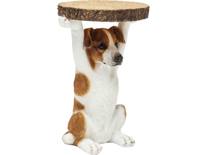 Ένα πρωτότυπο τραπεζάκι που χαρίζει χαμόγελο σε κάθε παρατηρητή και νέα γοητεία στο περιβάλλον. Η βάση του έχει το σχήμα ενός χαριτωμένου σκύλου. Επιφάνεια τραπεζιού: αναπαραγωγή δίσκου δέντρου. Διατίθενται και άλλες εκδόσεις. Υλικό: Πίνακας 1: 100% πολυρεζίνη.