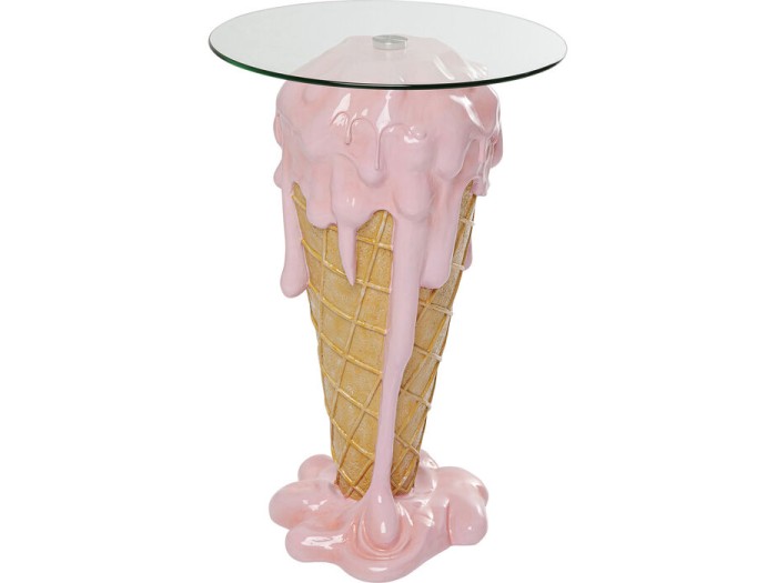 Βοηθητικό τραπέζι παγωτό με στρογγυλή γυάλινη επιφάνεια. Ένα πραγματικά εντυπωσιακό τραπέζι, παιχνιδιάρικο που μπορείτε να το βάλετε στο σαλόνι, στην κουζίνα, στο παιδικό δωμάτιο ή όπου αλλού θέλετε. Μια εξαιρετική επιλογή για τον χώρο σας!