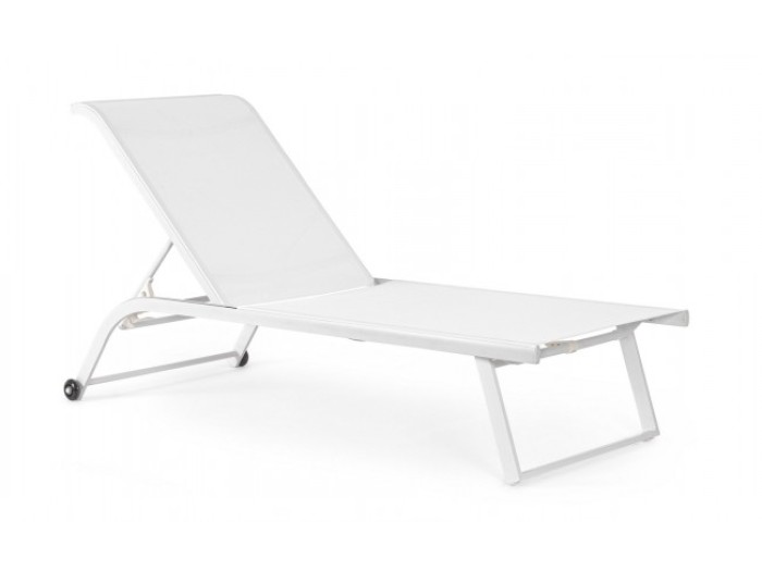 Ξαπλώστρα από αλουμίνιο σε λευκή απόχρωση, μεταλλικά εξαρτήματα και πλαστικές ρόδες. Διαθέτει συνθετικό ύφασμα (textilene) στην πλάτη και το κάθισμα, ανθεκτικό στη βροχή και στις υπεριώδεις ακτίνες του ήλιου. Έχει διαστάσεις 70x182x91,5 εκ.| Μήκος | 70 |