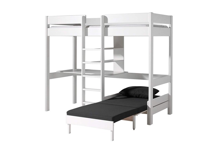 Υπερυψωμένο κρεβάτι PINO με γραφείο και πολυθρόνα από ξύλο πεύκου συνδυασμένο με MDF υψηλής ποιότητας σε  χρώμα λευκό PIOLZB14
